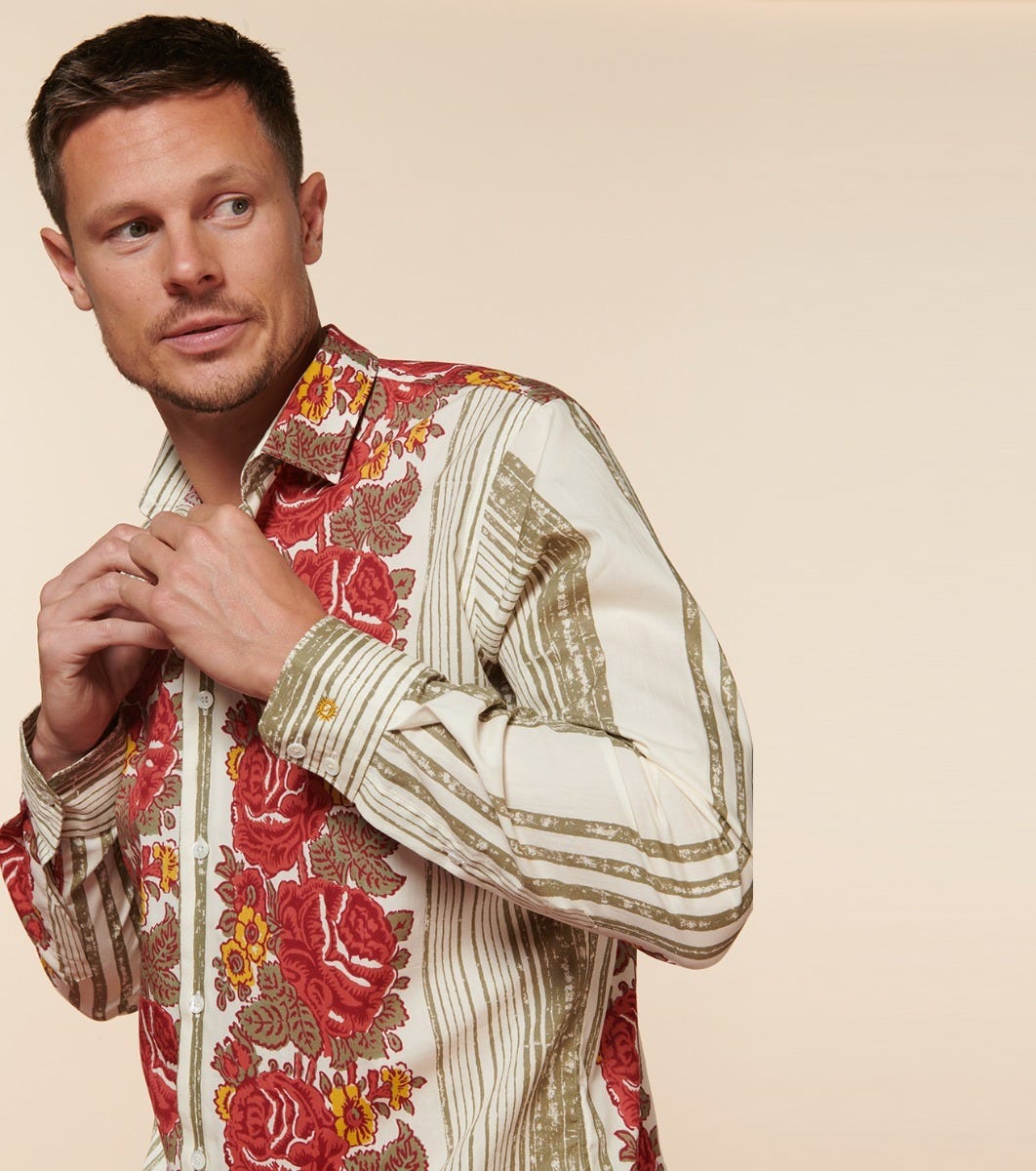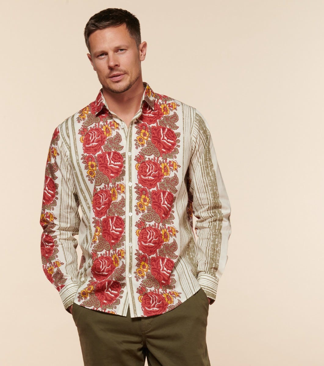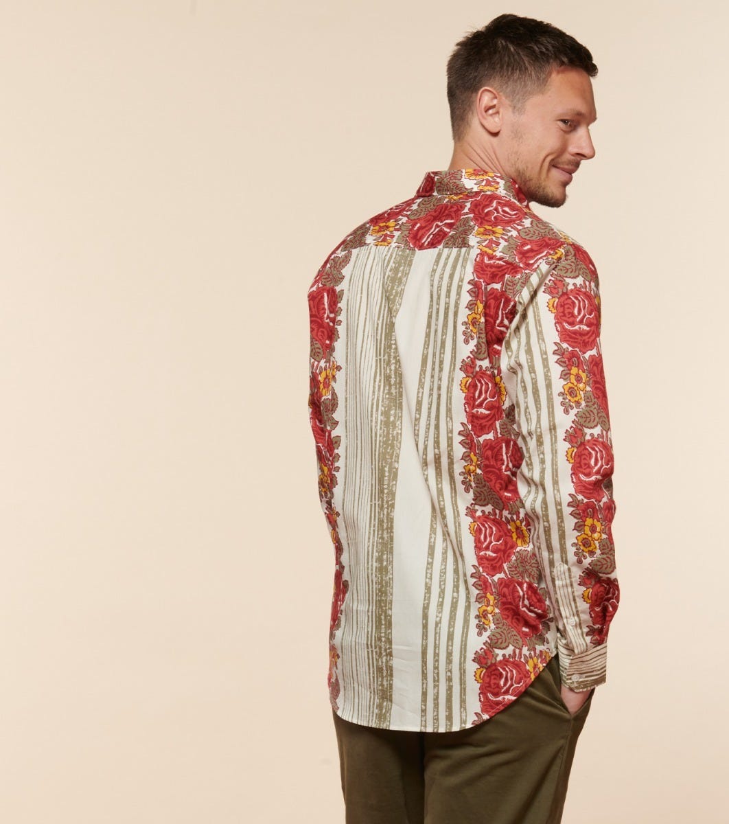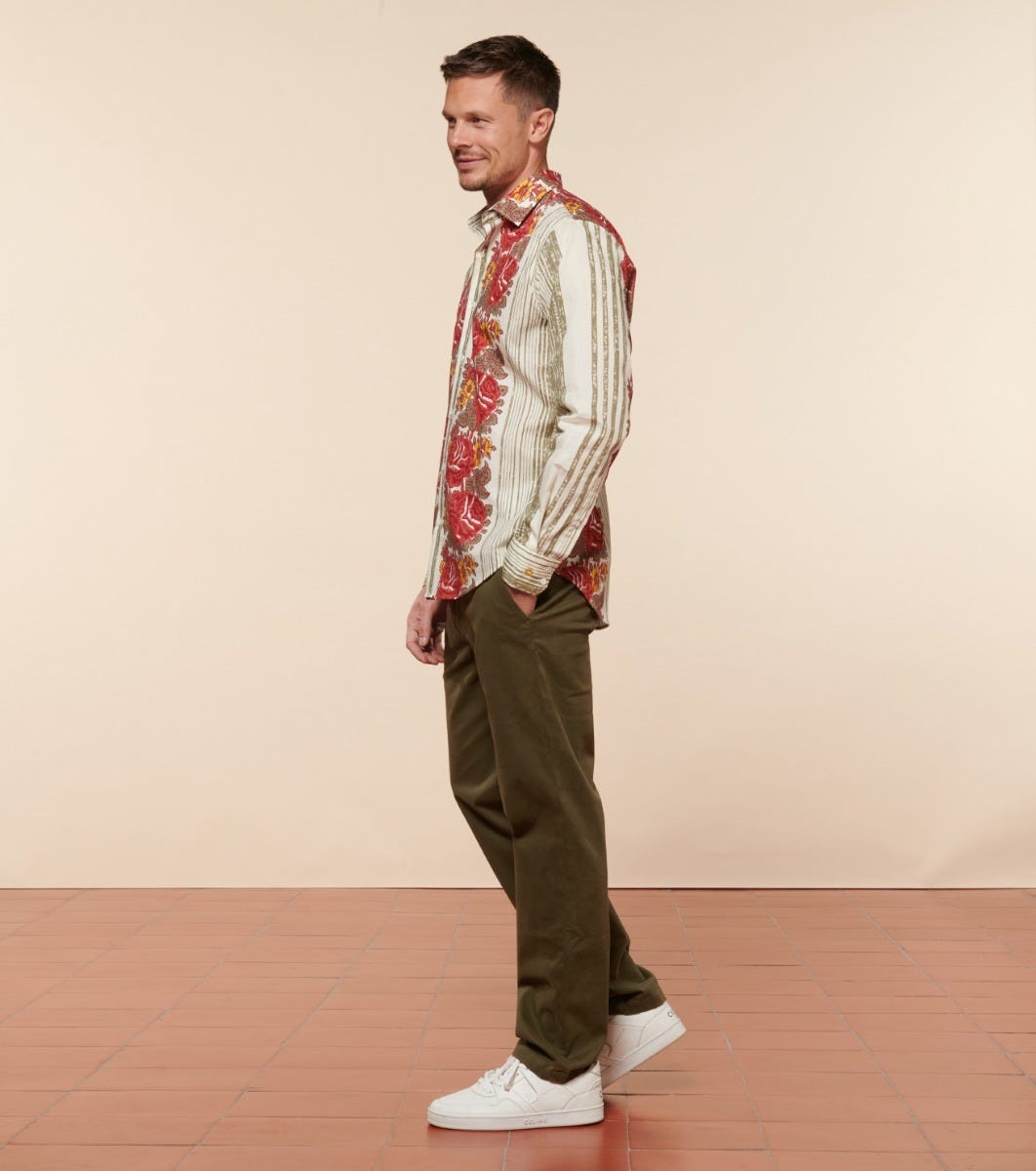 - En popeline 100% coton, imprimée avec notre motif “Chantal” coloris kaki rouge