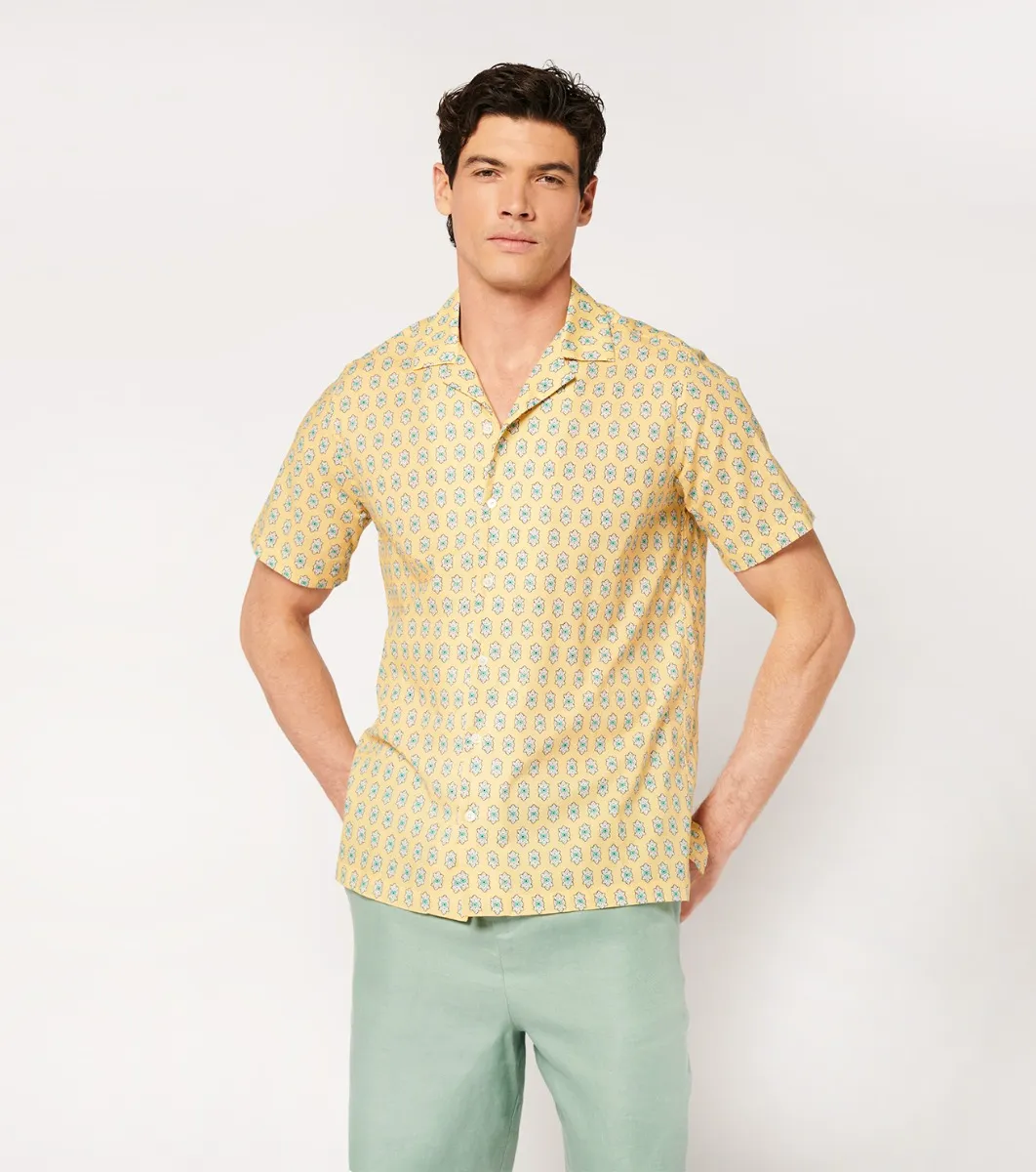 - Made of cotton batiste, printed with our “Allegro” motif in straw yellow.