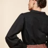 - V-neckline and button placket with beautifully designed black metal buttons