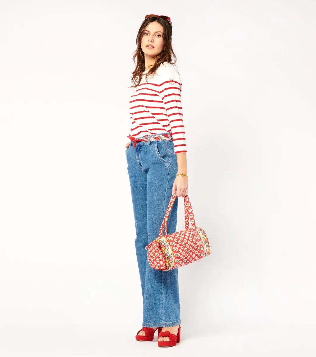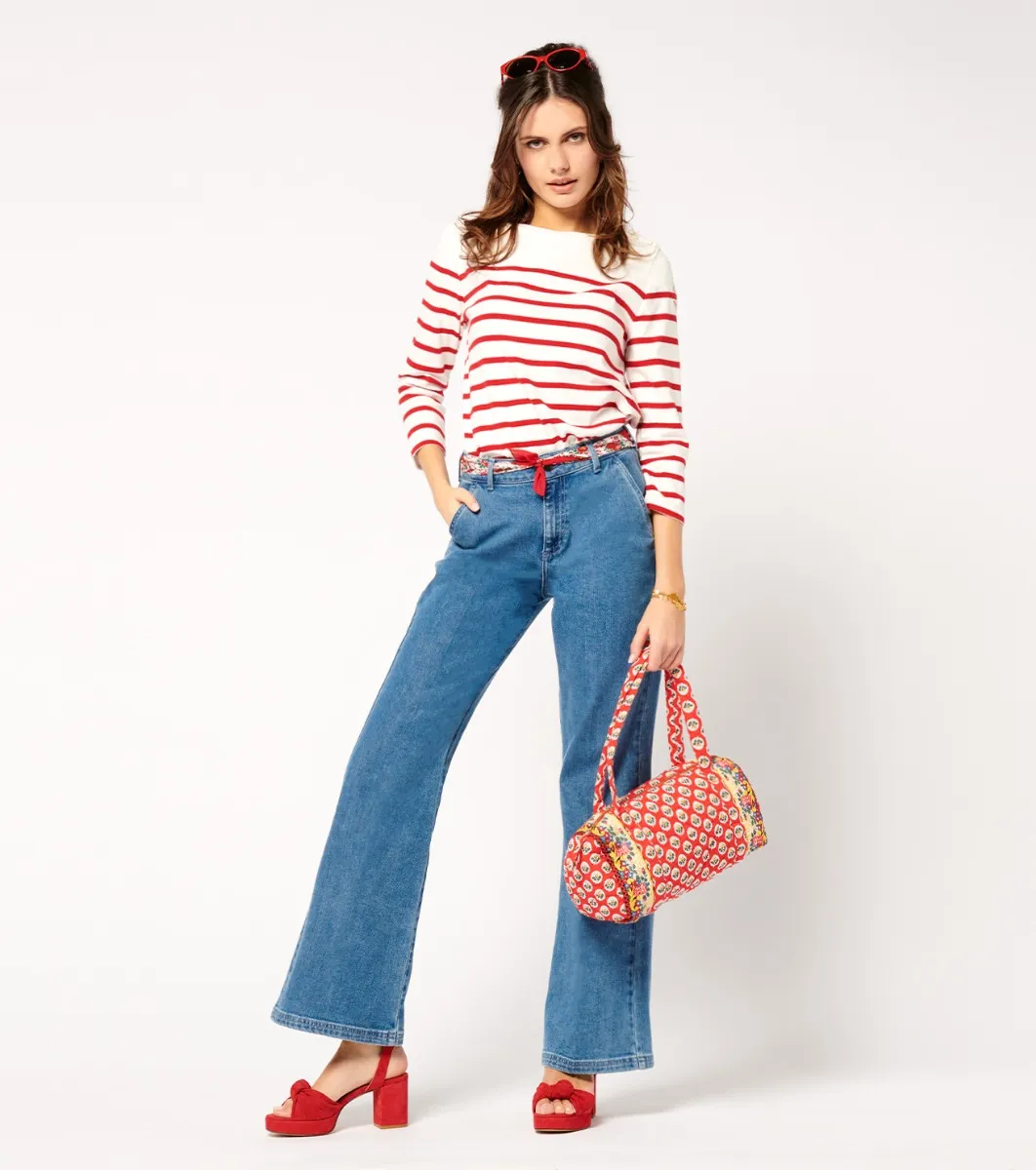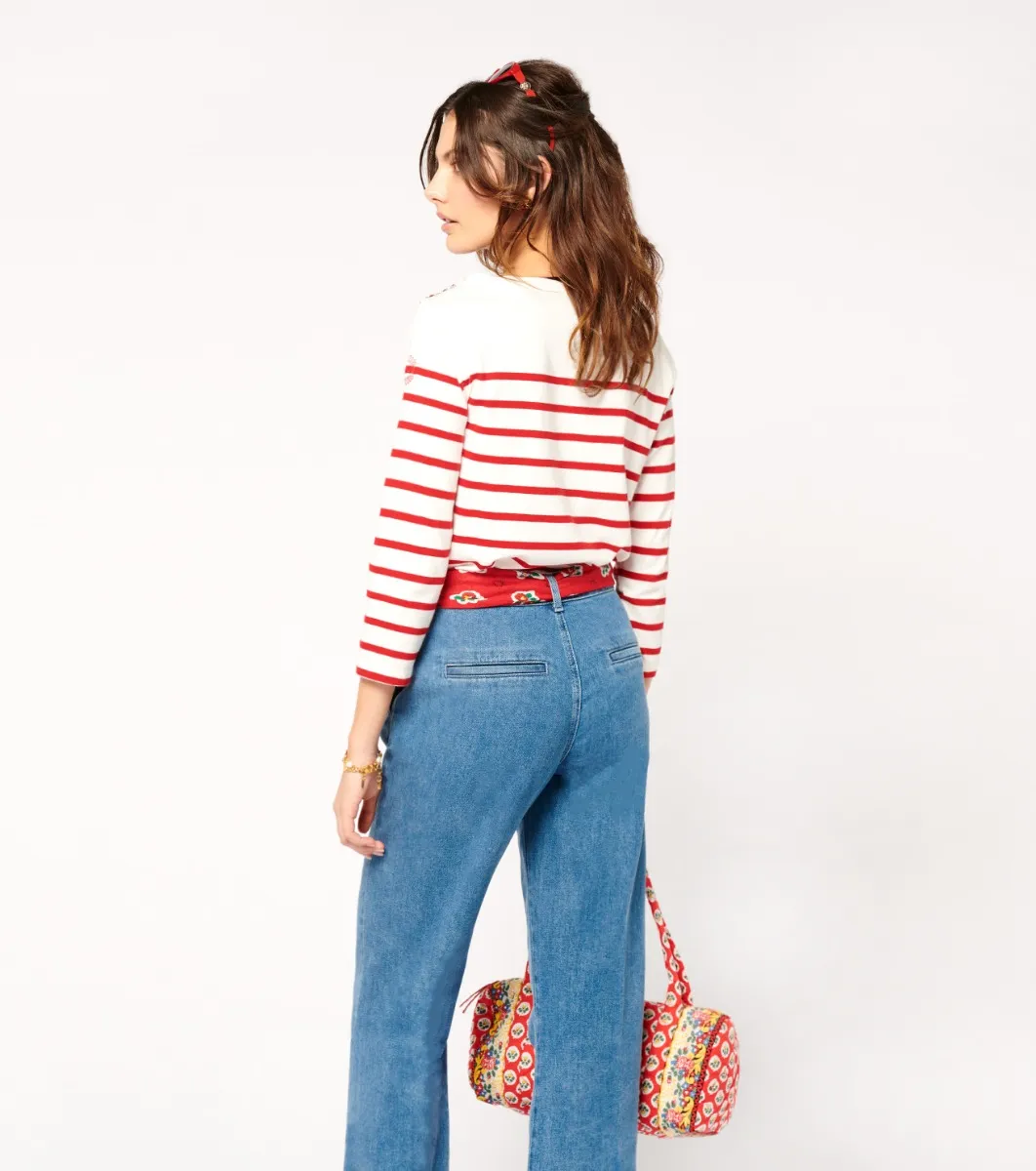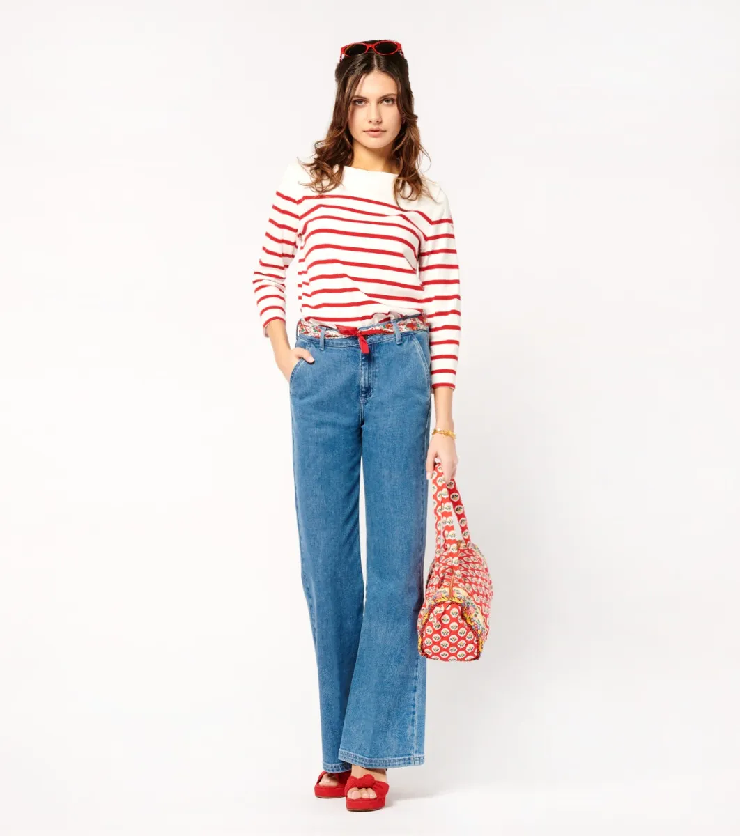 - The GABIAN jeans are made of elastane denim with a straight cut and wide leg. Its marked pleat detail at the front, high waist and pretty topstitching give it all its femininity!