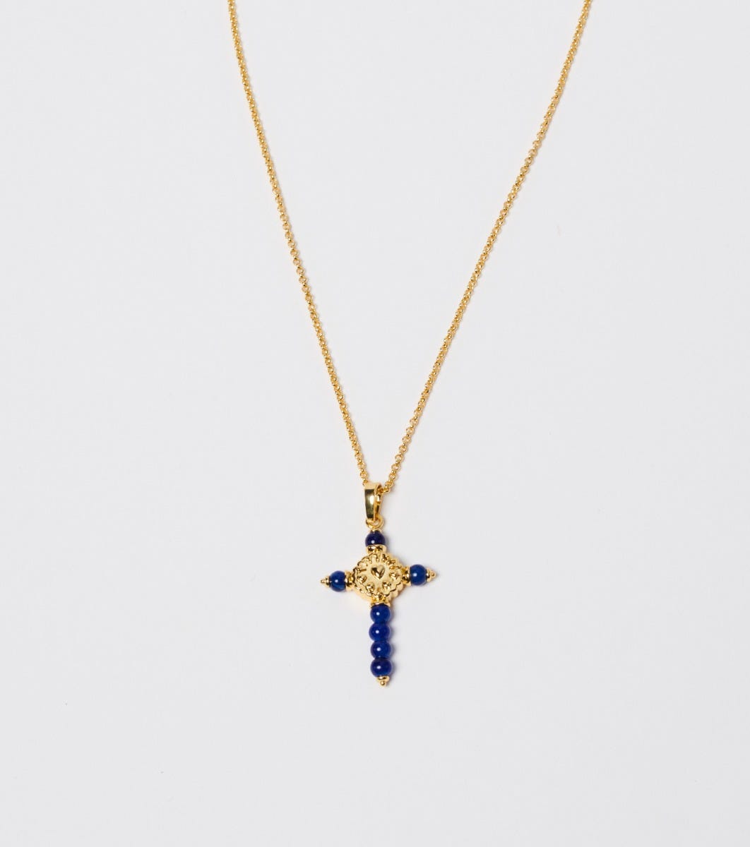 Souleiado Women’s Lapis Blue Pearls “fleur D’arles” Cross Necklace | Bleu Lapis