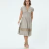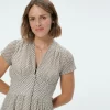 - Cinched at the waist by a corselet cut-out with a smocked effect at the back