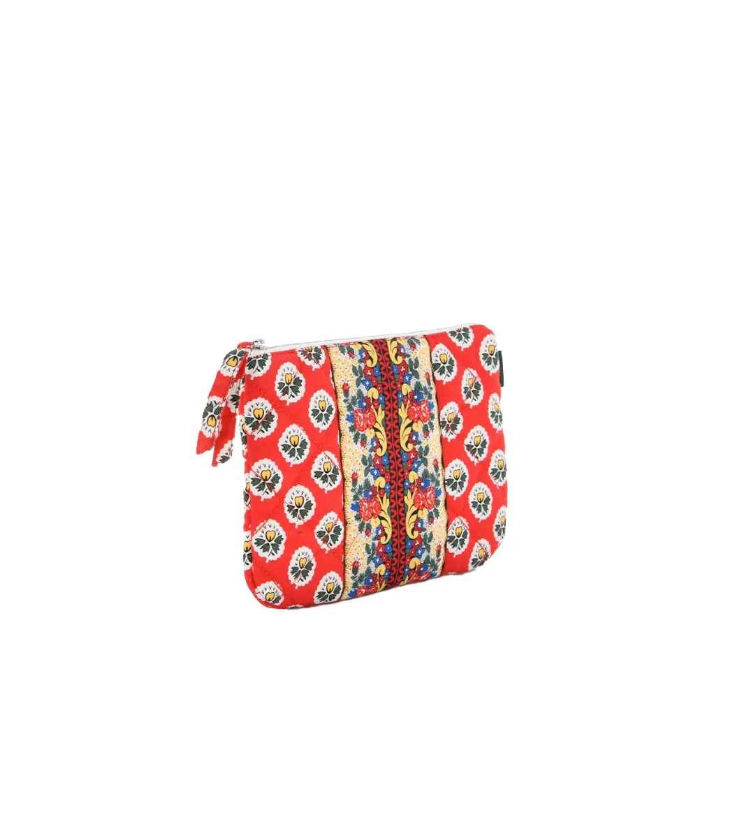 - Vertical quilted cotton pouch with poppy “Fleurs d’Arles” print and poppy “Pitchoune” double braid