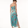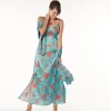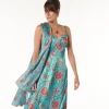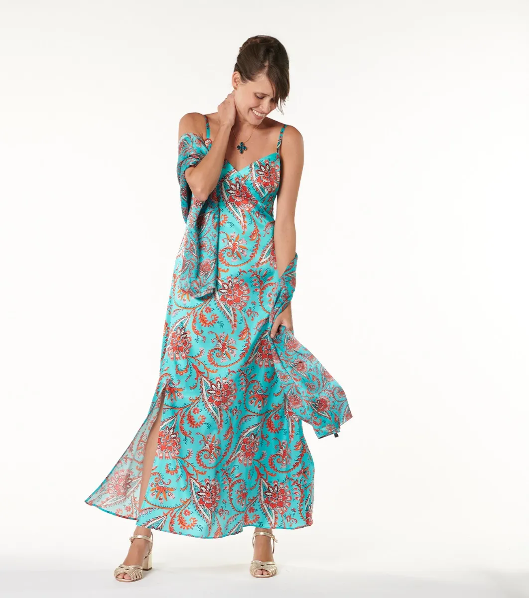 Souleiado Women’s Silk Lond Dress Floral Patterns | Turquoise & Corail