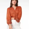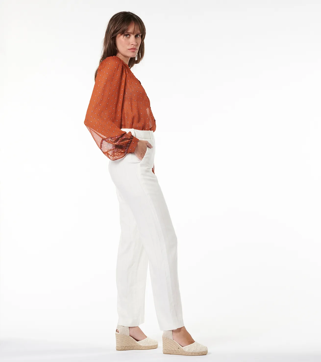 - Button placket in the middle front with delicate square buttons covered with fabric.