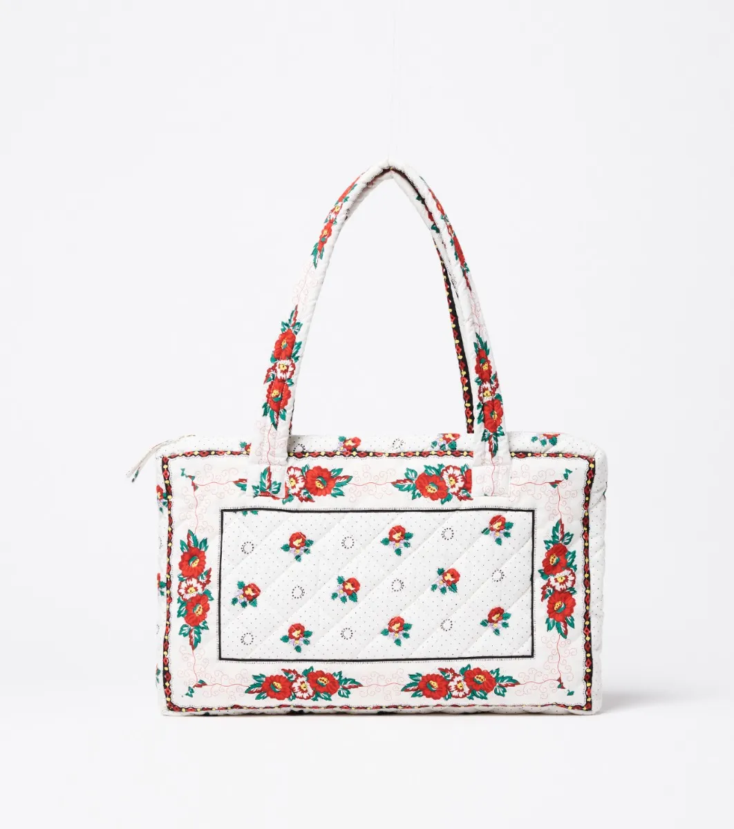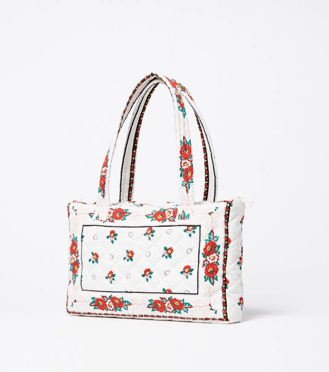 - ADIANA quilted bag in white printed cotton with La Petite Rose braid