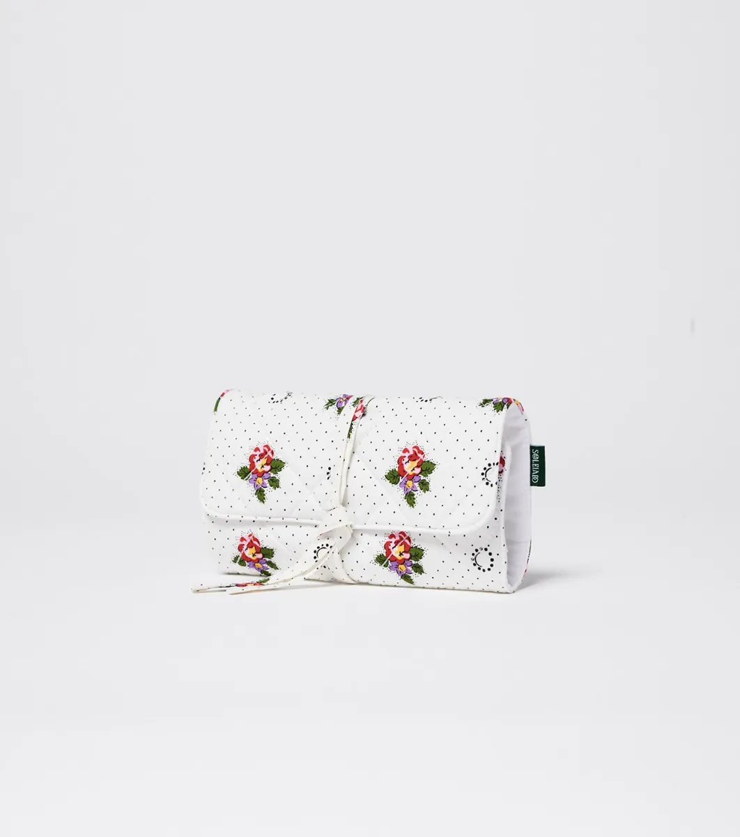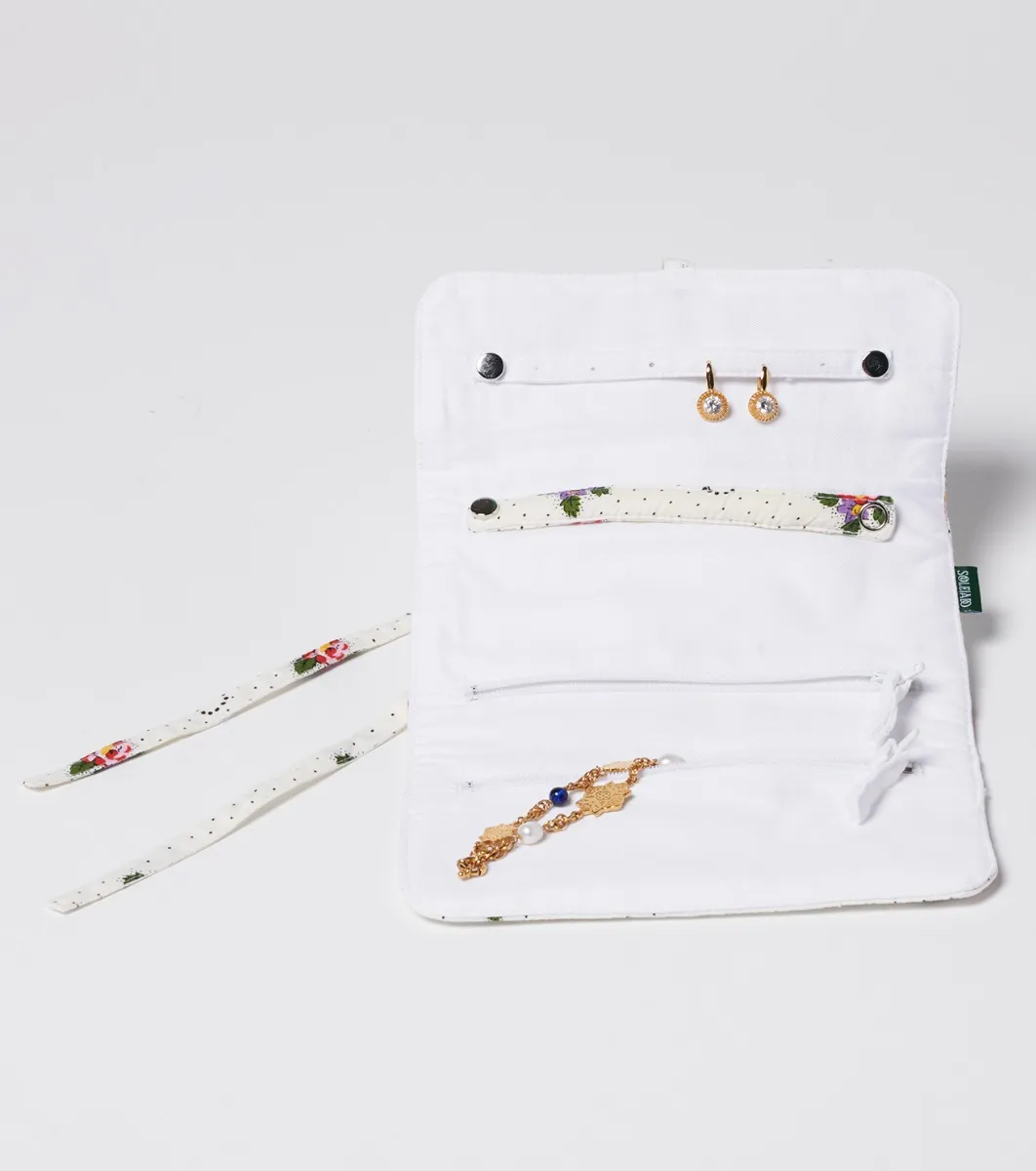 - Quilted rhombus jewelry case with “Printemps” print in white