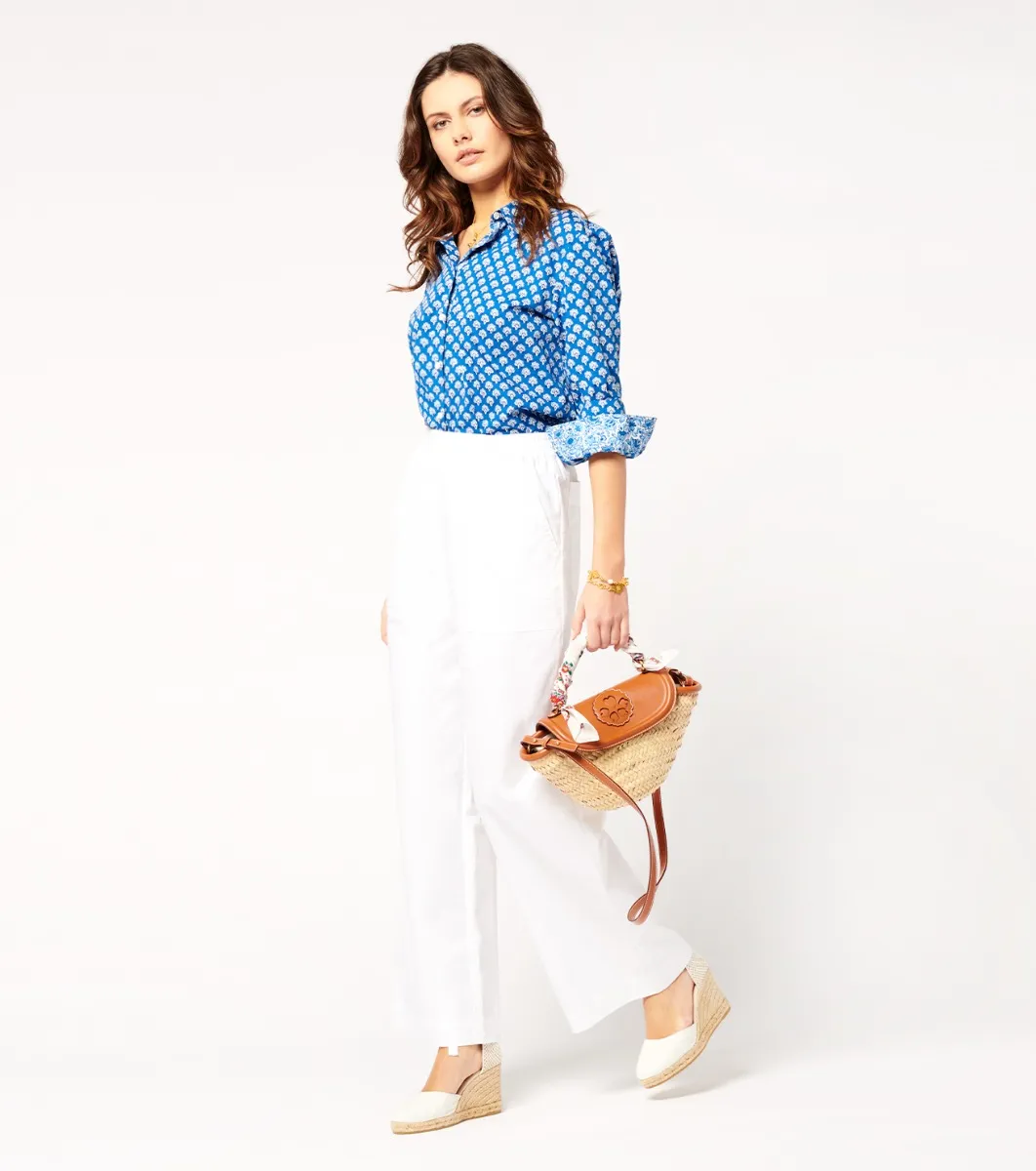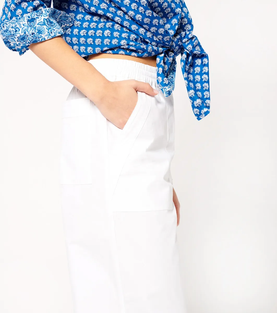 - The Cogolin pants revisit the cargo style, combining comfort and femininity. Their cargo-inspired cut and structured fabric offer an elegant yet practical look. At the same time, its elasticated waistband with interior drawcord emphasizes the silhouette in a flattering way, and wide hems lightly add a casual touch. Its streetwear look is feminized by topstitching details on the waistband and pockets. Pants with a resolutely modern look, ideal for a casual look.
